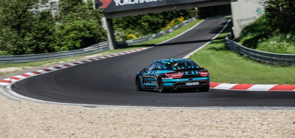 Porsche was the first to publicise an official lap time for the retail version of an EV sports car, with theTaycan, back in August 2019, just prior to the vehicle’s retail launch. The Taycan recorded a time of 7 minutes and 42 seconds (on the 20.6 km track). Porsche said the timed car was close to the retail version, with a few safety modifications. This set a strong benchmark, close to the lap time of the then flagship Porsche Panamera combustion 4-door super saloon (7:38).
