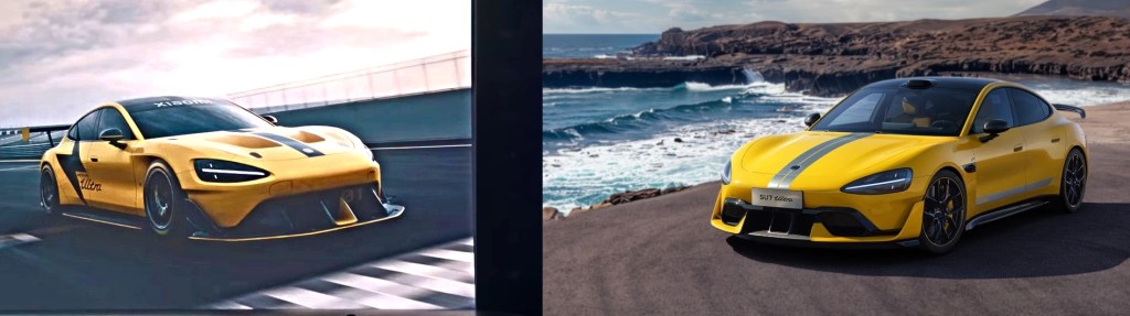 By contrast, Xiaomi’s press release for the retail SU7 Ultra only mentions 285 kg of downforce at high speed — a world apart. This is understandable because most of the retail version’s owners will still be looking for decent efficiency in daily use (rather than drag-inducing huge wings), and also because road-going cars obviously must have “pedestrian-safe” bodywork that track-only cars don’t have to worry about. Here’s a side by side composite image which highlights the aerodynamic differences: